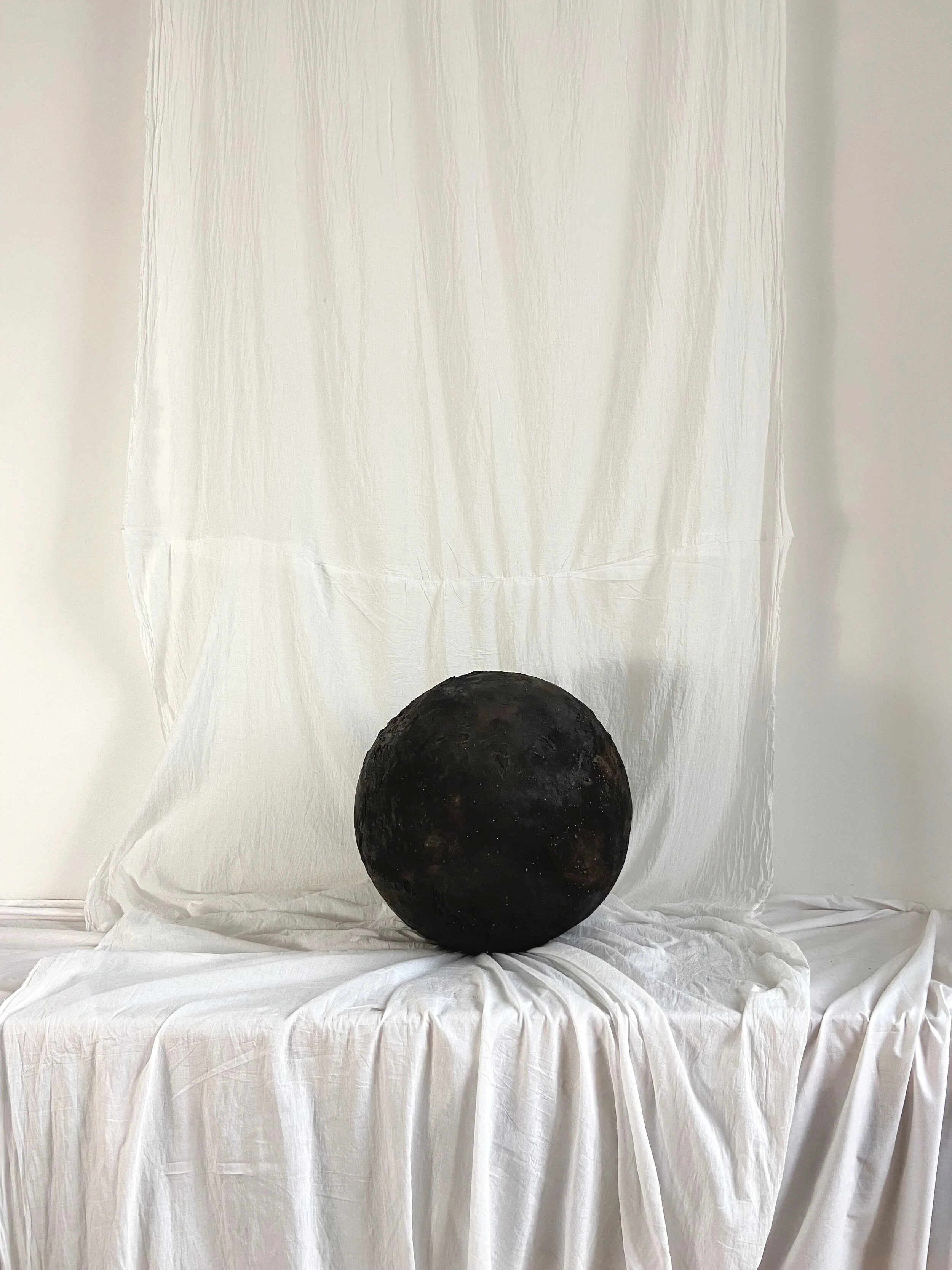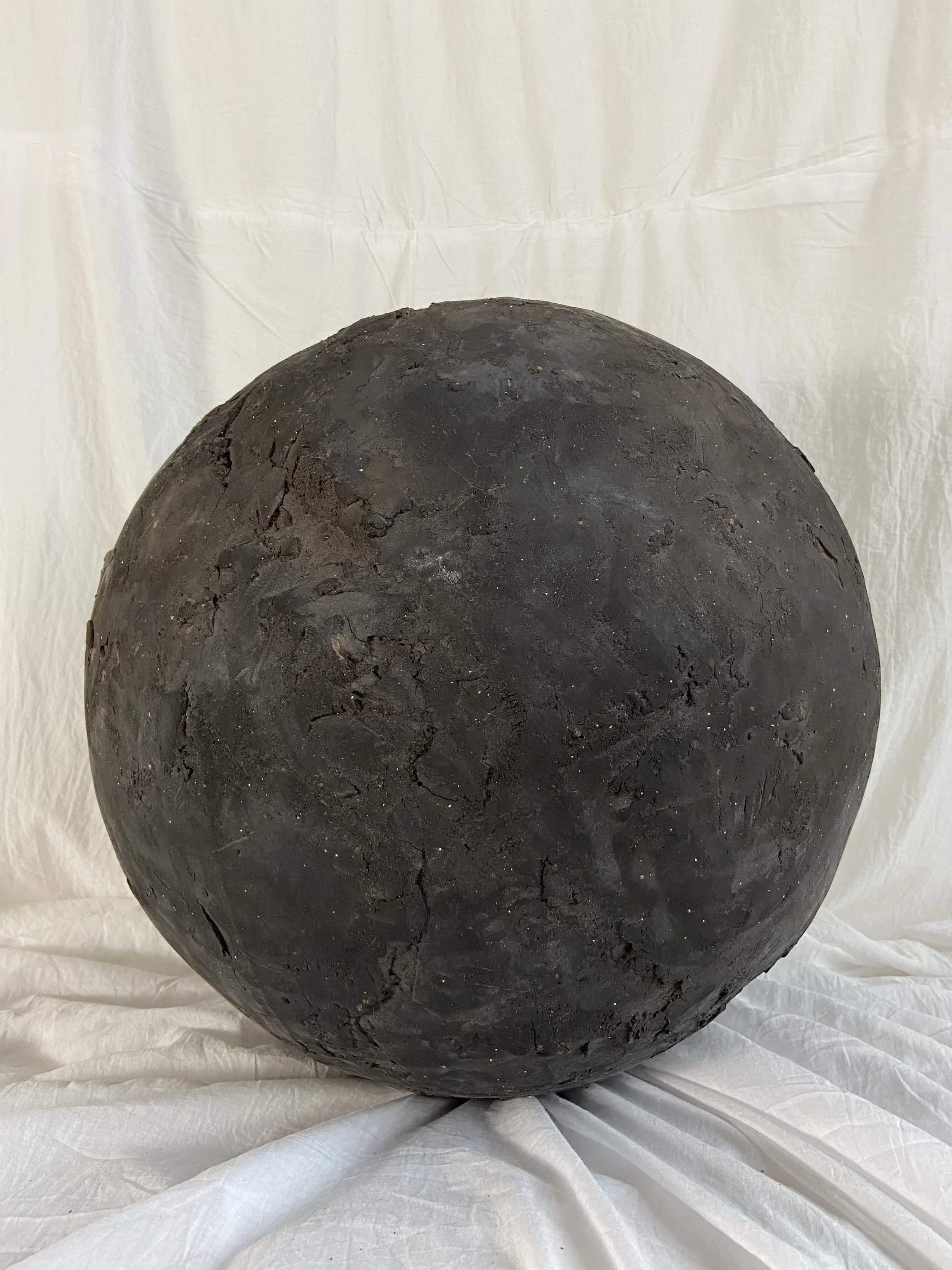 The spheres are dried for at least 3 weeks, then the cooking process takes place first in the oven (kiln) and then does the treatment of fire ... Called pit firing, using seaweed, wood and sticks, sawdust and natural materials such as salt. The materials that burn around the vase leave beautiful marks on the clay surface... The process is precious and unpredictable.