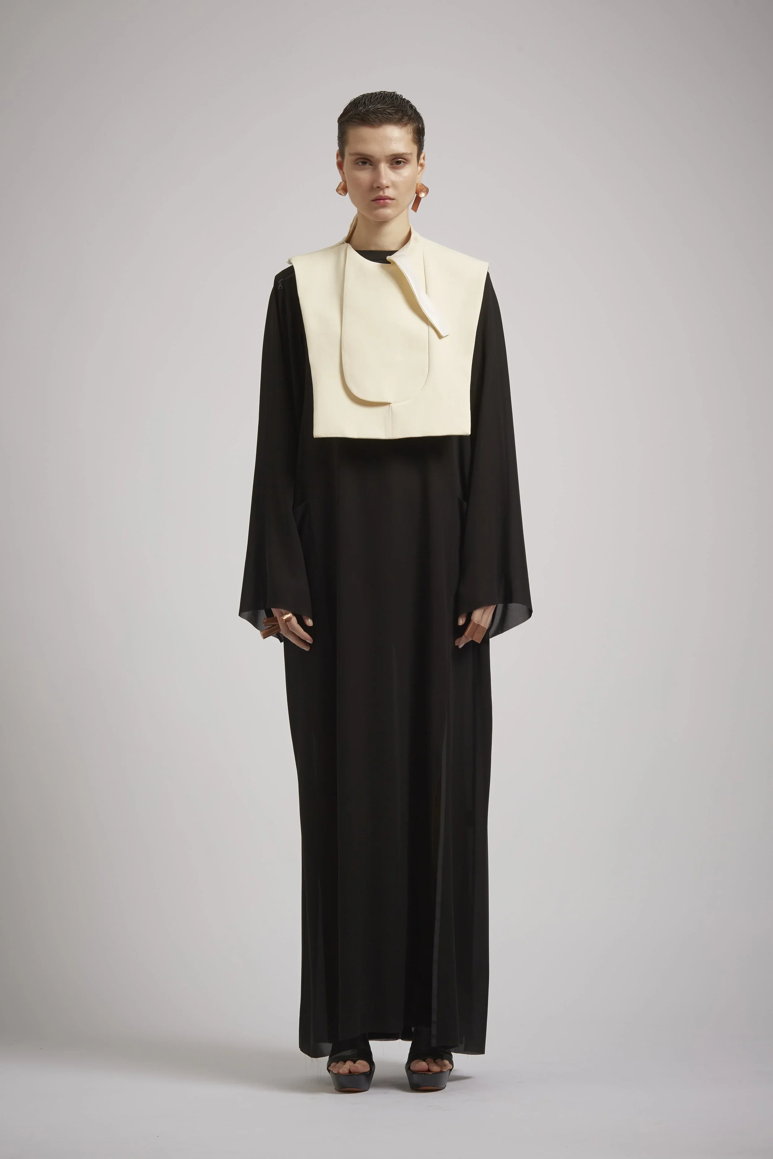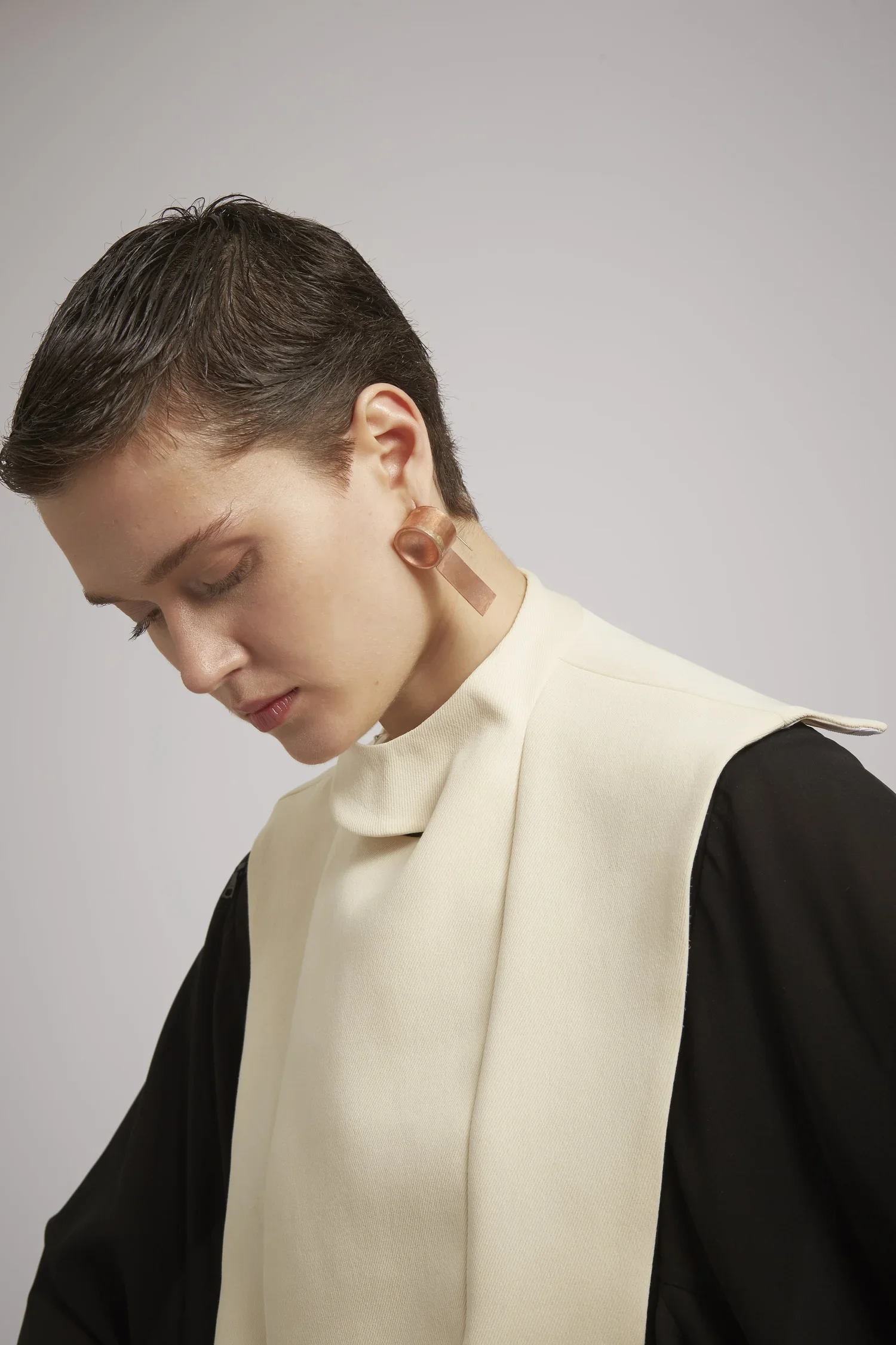 This skirt sits at the upper waist with an invisible zip closure at the centre back, made from 100% wool in Cream. The draped volume drops generously at the sides while lifting upwards at the centre front and centre back. It is slightly longer at the back with a raw hem finish. This skirt is fully lined in silk.