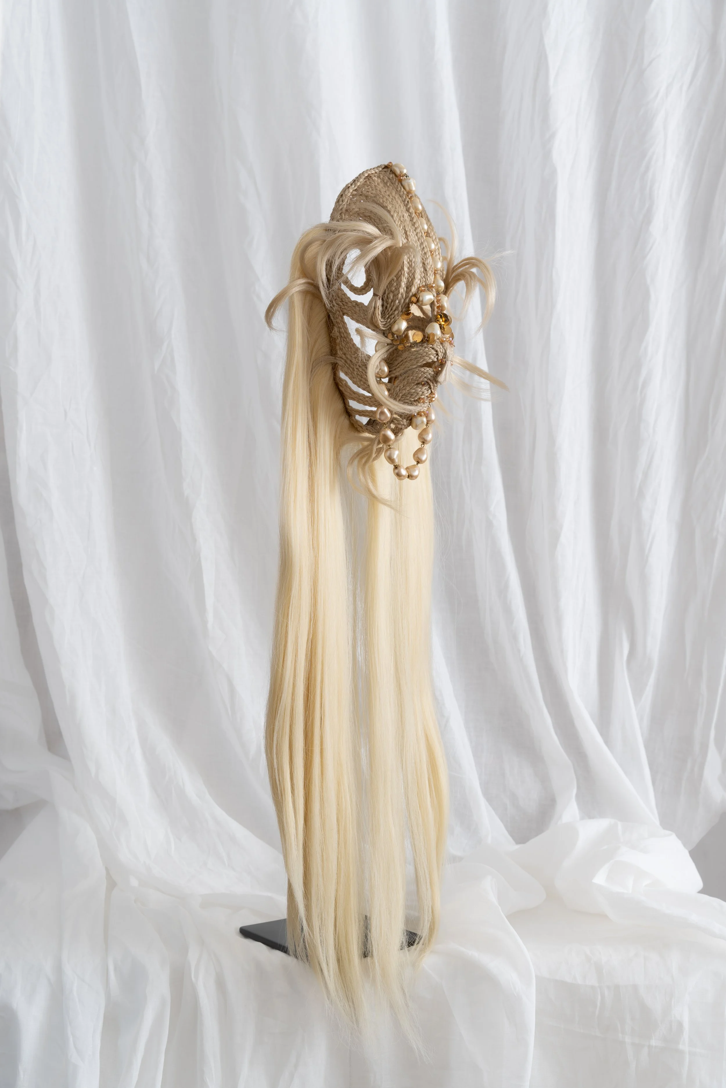 LONG SEMI-SYNTHETIC HAIR, BRAIDED AND ADORNED WITH BEADS