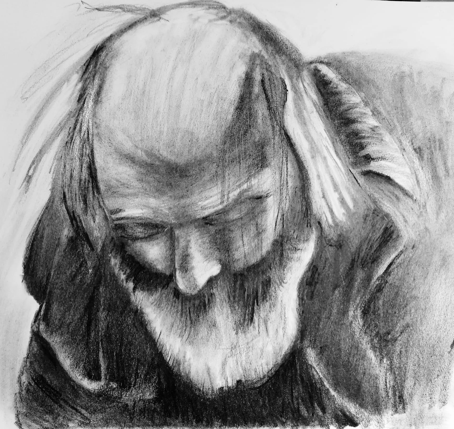 This old man, without saying anything, tells us in his own way about his life, which apparently wasn't always easy.