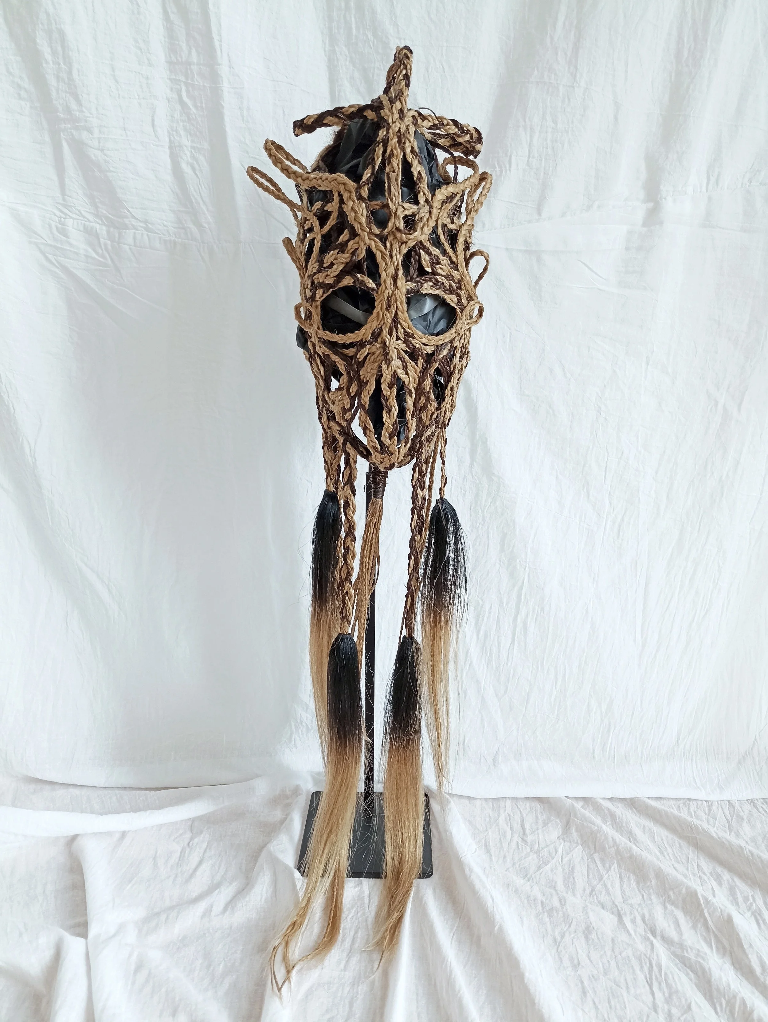 Murielle Nisse is a French artist who trained at the Paris Opera in costume design. Lace, pearls, braided hair, wool, her masks are made up of a multitude of noble materials selected by the artist herself before being meticulously assembled by hand, a technique inspired by many civilizations from all over the world. . Through her artistic approach, the designer questions the notion of femininity and the aesthetic codes in vogue, to rethink the transformation and staging of her profile according to new forms.Although sometimes disturbing, her work is not no less intriguing and stunning.